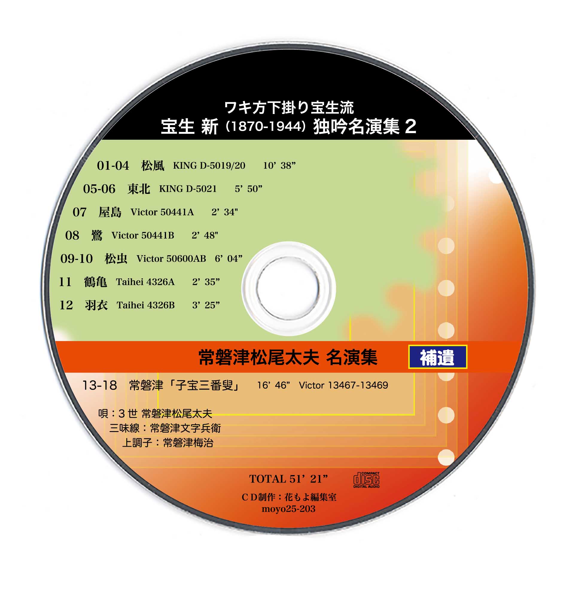 付属 CD ワキ方下掛宝生流 宝生 新 独吟名演集 2 /常磐津松尾太夫 名演集補遺「子宝三番叟」 収録内容詳細は こちら |