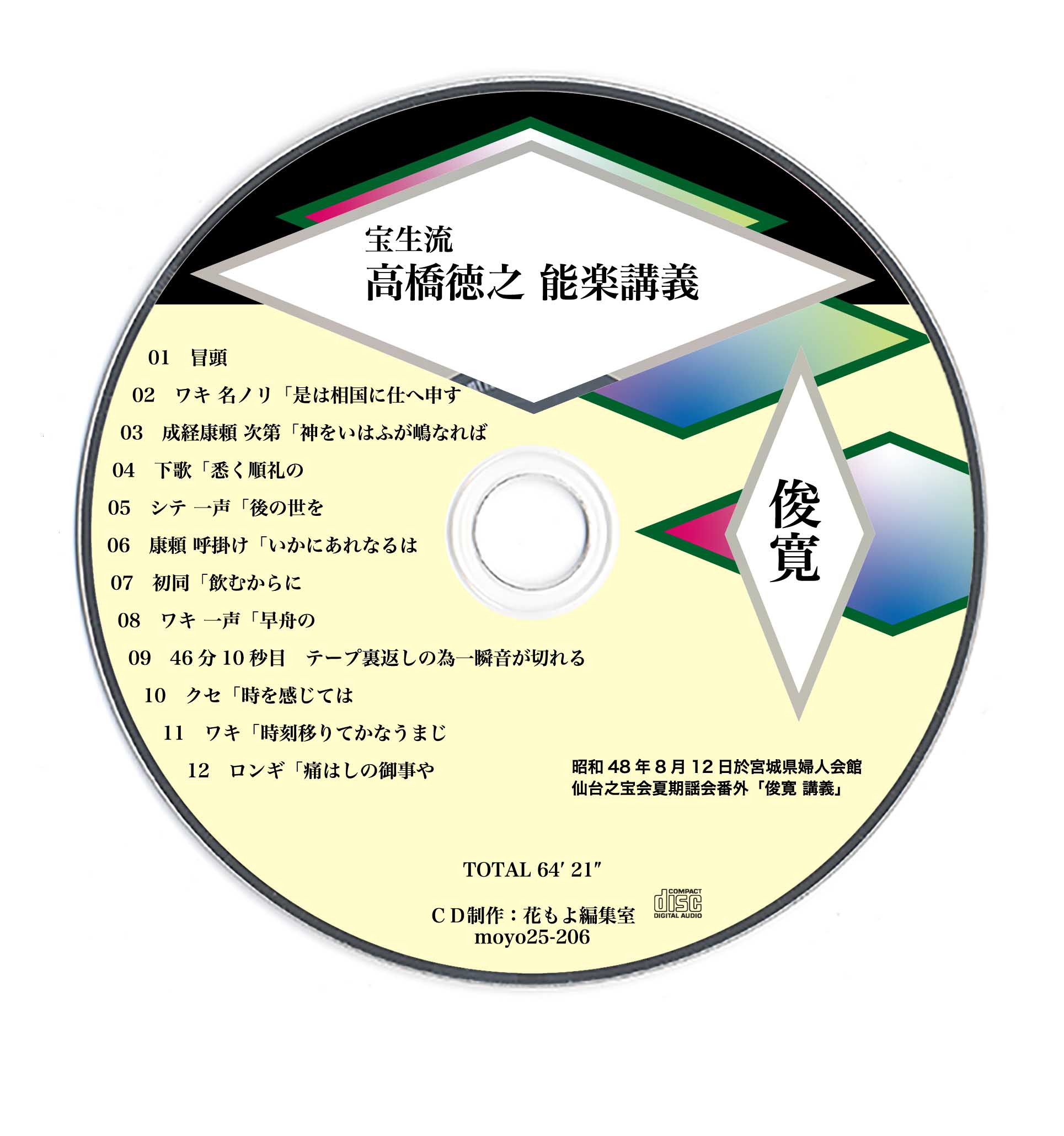 付属 CD 宝生流 高橋徳之 能楽講義「俊寛」 収録内容詳細は こちら |
