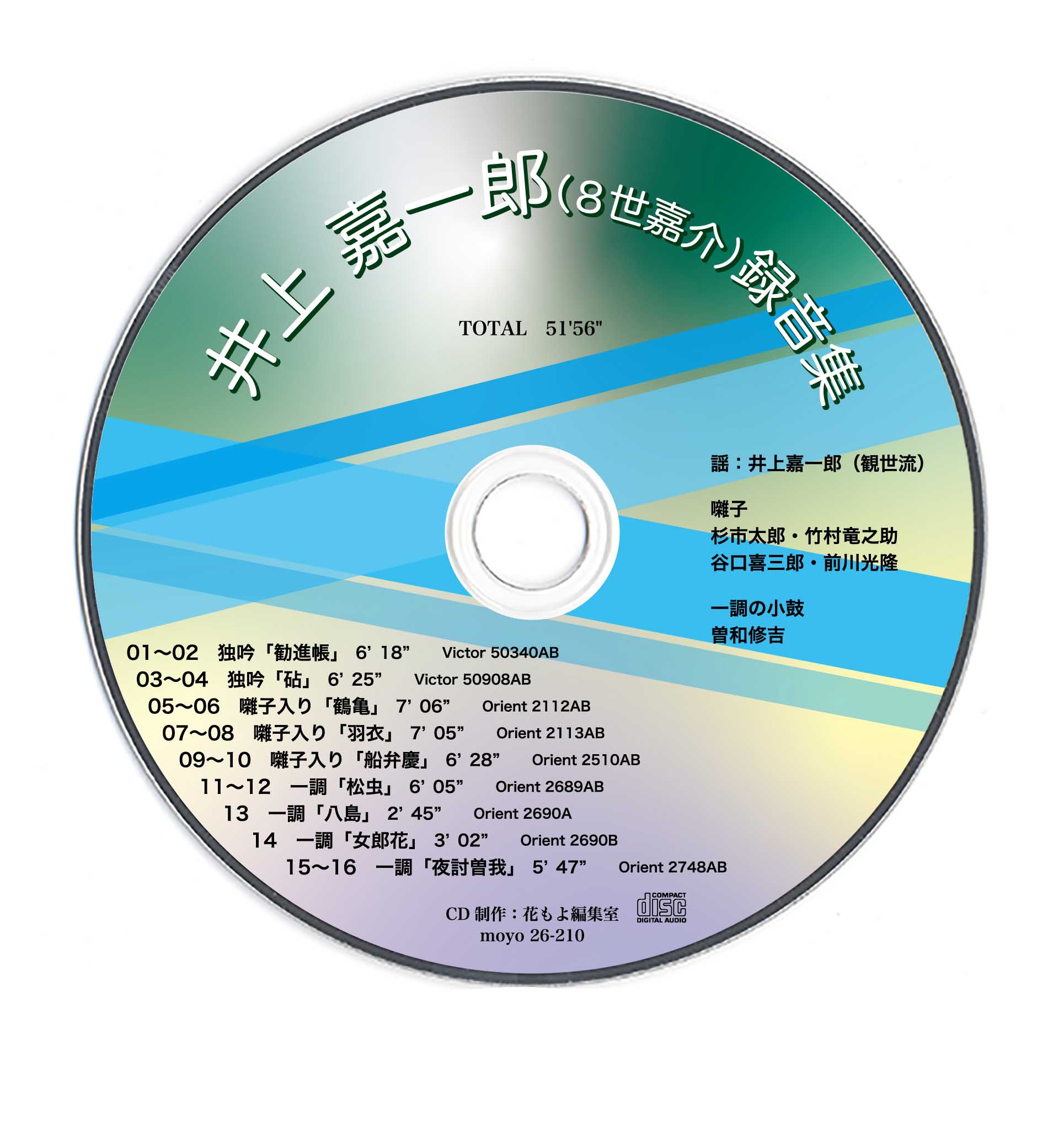 付属 CD 井上嘉一郎(8世嘉介)録音集 独吟「勧進帳」「砧」、一調「松虫」「女郎花」ほか 収録内容詳細は こちら |